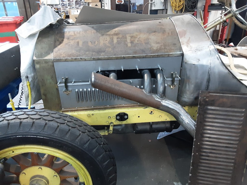 Louvres in motorkap van een Austin Healey 100/4 gemaakt.