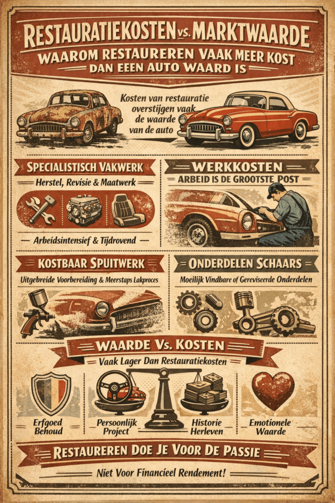 Zelfs een perfect gerestaureerde auto kan daardoor minder waard zijn dan de totale restauratiekosten.