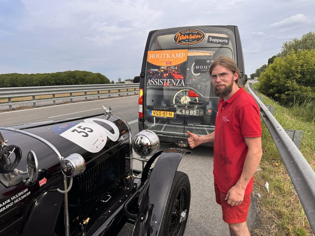 Het bieden van technische service en het uitvoeren van reparaties tijdens een evenement zoals de Mille Miglia is van groot belang om ervoor te zorgen dat de deelnemende auto’s optimaal kunnen presteren. Het kan een uitdagende taak zijn, gezien de lange afstanden en de hoge snelheden waarmee de auto’s tijdens de race worden belast. Jansen Restorations heeft een waardevolle rol gespeeld door hun expertise en diensten aan te bieden aan het team Houtkamp en mogelijk ook andere deelnemers aan de race. Het is geweldig om te horen dat ze hebben bijgedragen aan het succes van het evenement.